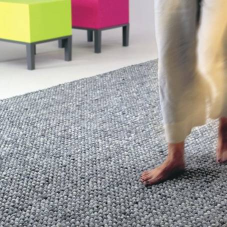 an all wool modern rug hand knotted using traditional techniques with matching poufs